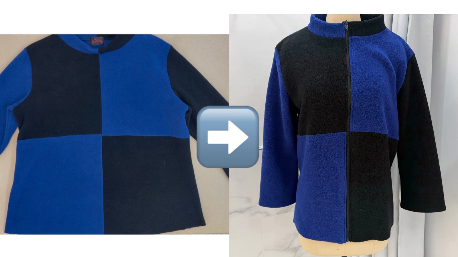 Esta intervención consiste en abrir el delantero de un jersey que originalmente es tipo “ponérselo por la cabeza” y añadir una cremallera frontal, transformándolo en una prenda mucho más práctica y funcional.